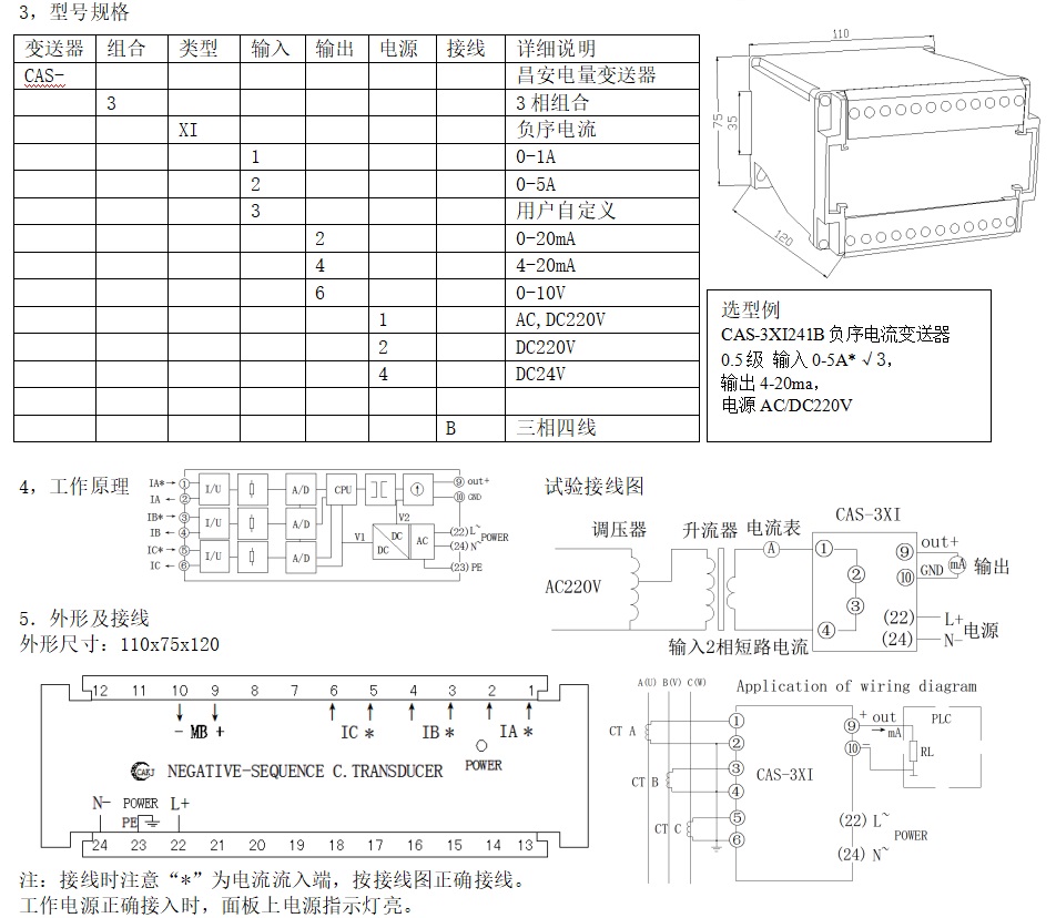 CAS系列負序電量變送器是采集系統(tǒng)三相電流、電壓信號,計算出線路中的負序電流或電壓量,再轉(zhuǎn)換成按線性比例輸出直流電流、電壓并隔離的設(shè)備。