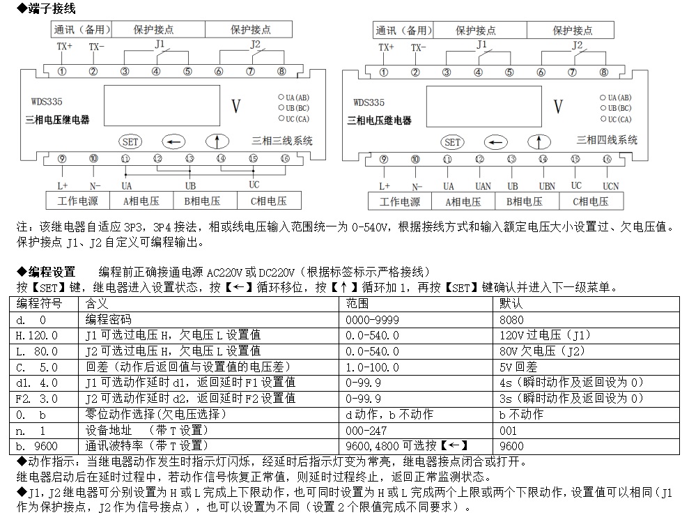 參數(shù):三相過電壓、欠電壓、缺相保護(綜合)